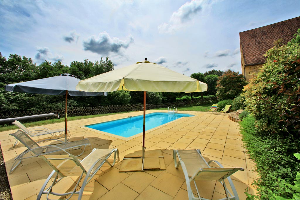Pool and outdoor facilities: Deckchairs, sun loungers, parasols, teak garden furniture, Weber charcoal barbecue