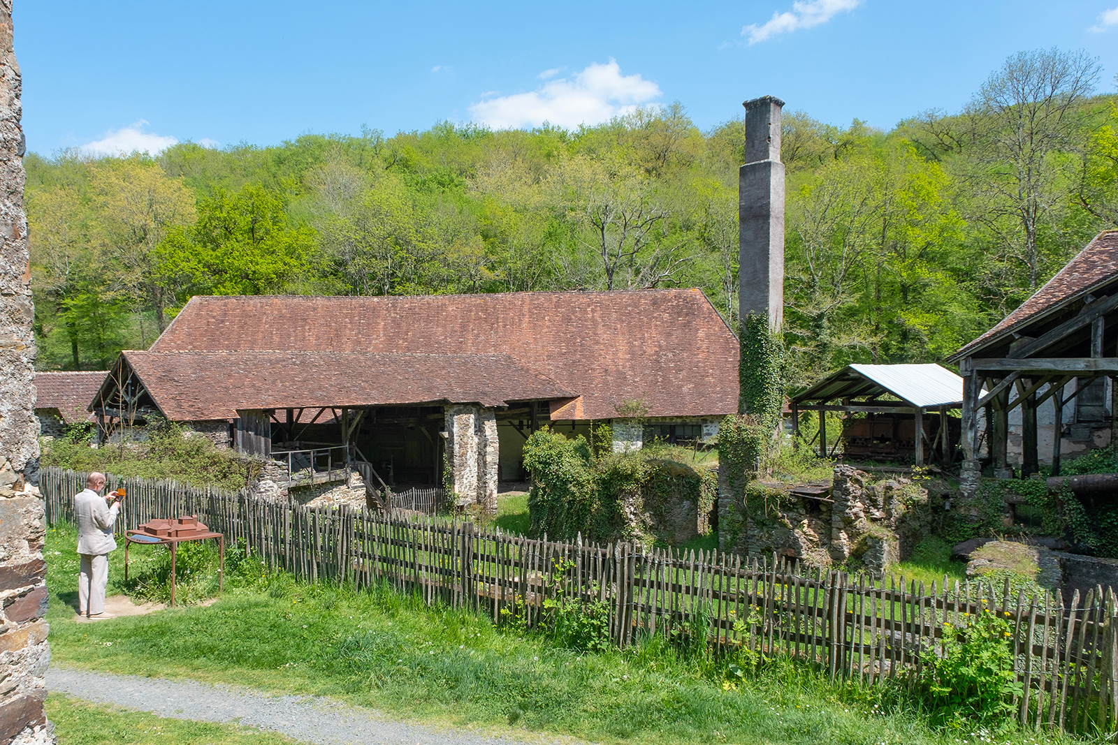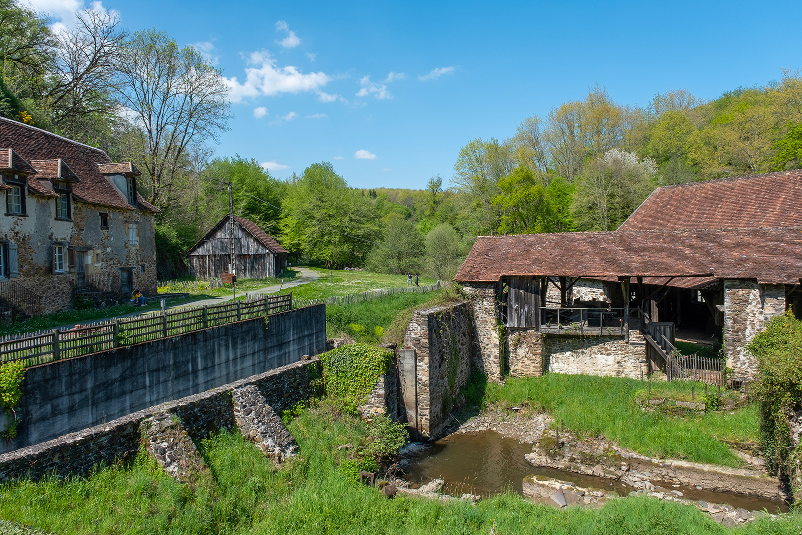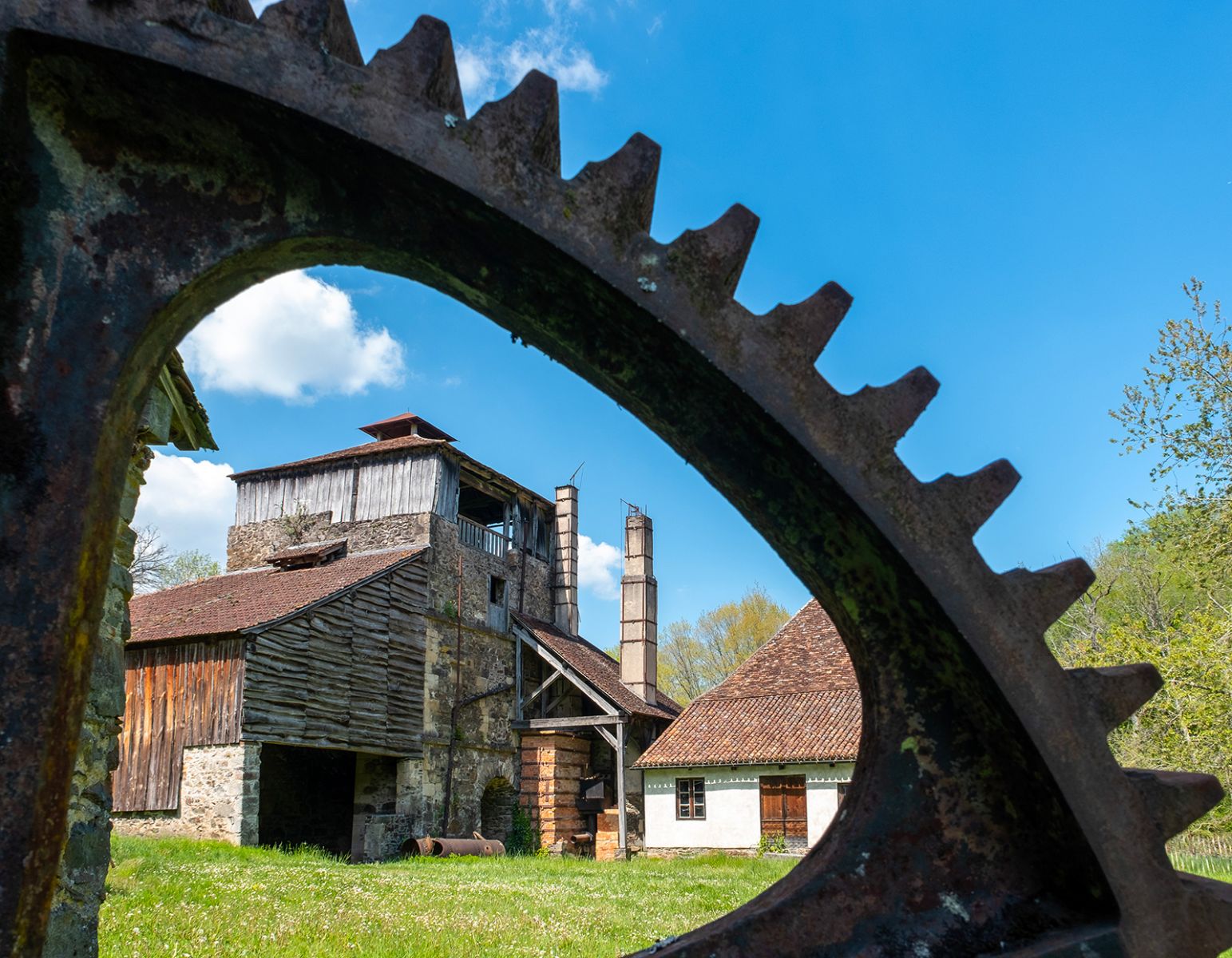 Overlooked by the Renaissance castle of the ironmasters, this wood-fired forge produced cast iron and iron using a blast furnace and a refinery until 1930, a wire-drawing workshop producing long nails, then mainly sardine can keys, continued until 1975.