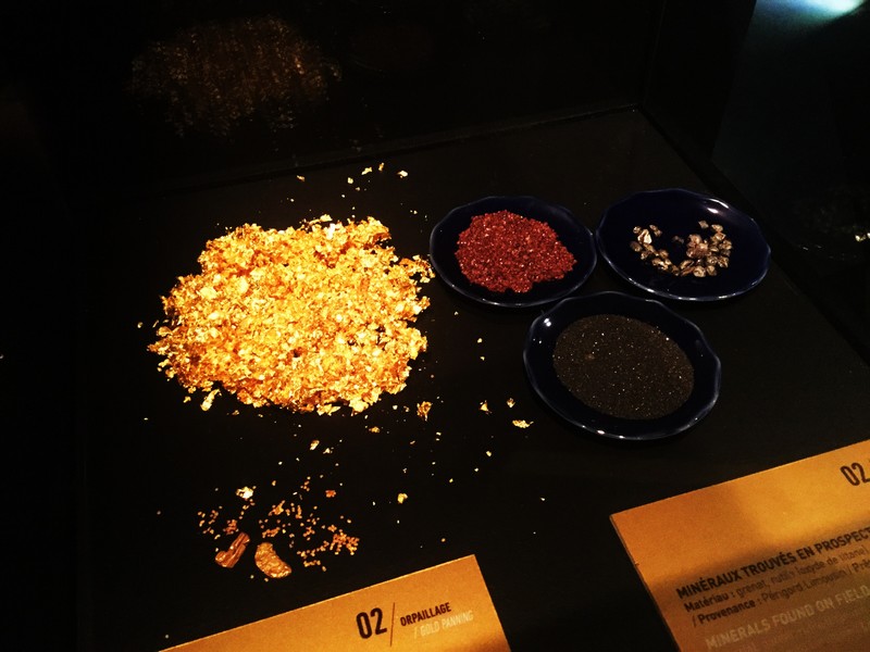 J’apprends que Jumilhac-le-Grand est aux marges d’un grand district aurifère. Ce dernier était au cœur de l’économie des peuples gaulois. Le musée me présente l’or de ses origines naturelles à la chaîne opératoire. On voit l’évolution entre le minéral et les techniques utilisées pour obtenir l’or ! Je croise une vitrine qui expose quelques pépites, elles brillent et ça me donne envie de les toucher ! Mon œil est captivé tout de suite par ce que je vois !