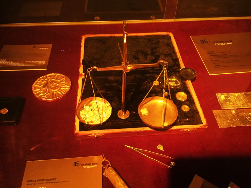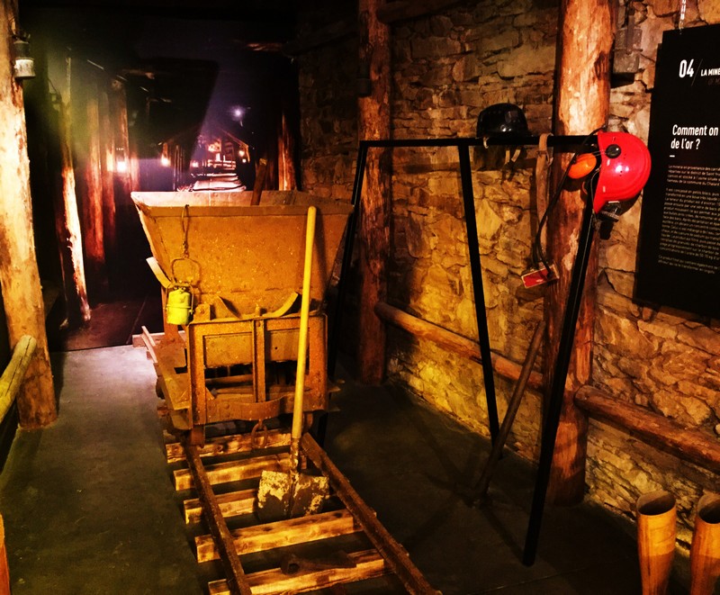 Le prochain panneau indique les conditions de vie des mineurs. Ces derniers n’étaient pas des esclaves, ils avaient un niveau de vie relativement aisé. S’ensuivent quelques photos de professionnels : archéologues, géologues, anciens miniers. Je peux entendre leurs témoignages en appuyant sur un bouton. J’écoute leurs anecdotes, leurs motivations pour leurs métiers. Je comprends que les mineurs sont une grande famille et que chacun garde majoritairement de bons souvenirs. Tous les témoignages sont positifs, ils cassent tous les stéréotypes que j’ai pu entendre auparavant. Les vitrines suivantes exposent quelques feuilles d’or, une balance c’est-à-dire toute l’histoire de l’industrie autour de l’or !