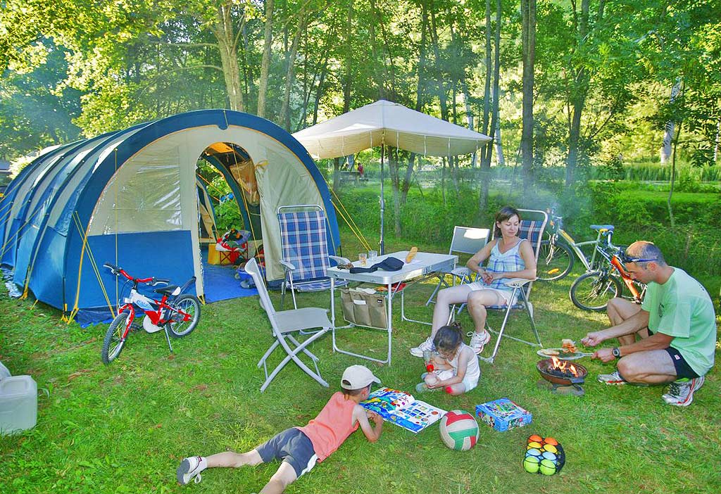 Le camping propose également des emplacements pour tentes, caravanes ou camping-cars, d'une superficie de 80 à 100m², au cœur d'un parc arboré en bordure de la rivière dans la Vallée de la Vézère. Ces parcelles ombragées, équipées d'un branchement électrique, offrent une véritable immersion dans la nature, idéale pour un séjour en Dordogne sous la tente ou en camping-car.