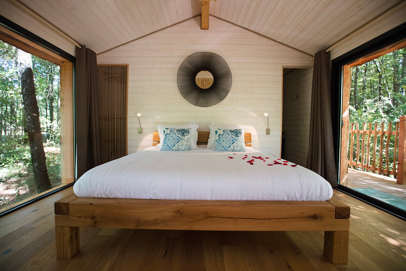 Avec supplément, nous proposons des accès à notre espace bien-être avec bain à remous perché dans un arbre, sauna…