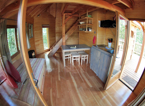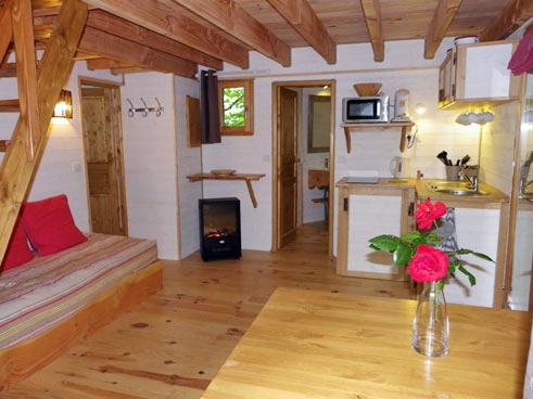 - Les cabanes perchées « gîtes » pouvant accueillir de 1 à 5 personnes. Elles disposent de 2 chambres et d'aménagements modernes : une salle d'eau avec douche, toilettes et lavabo, une kitchenette équipée, et chauffage pour l'hiver.