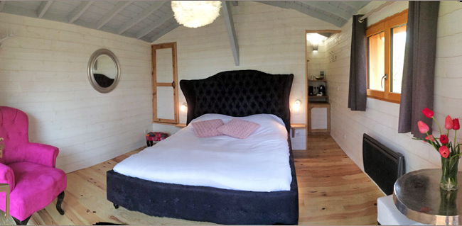 - Les cabanes Spa pouvant accueillir 2 personnes : Un nid douillet pour un séjour follement romantique... Des cabanes de charme pourvues d'un spa privé et équipées d'une chambre avec un lit Queen Size et d'une salle de bain avec douche, toilettes et lavabo. Pour votre confort, vous disposerez d'un aménagement moderne : une salle d'eau avec douche, toilettes classiques et lavabo, un mini-bar, une bouilloire et une cafetière senseo ainsi qu'un chauffage pour l'hiver.